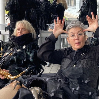 Ein feines Znacht in der Wichlern stärkte uns für das, was noch kam. Bereits auf dem Weg zum Dorfplatz strätzte es (glücklich jene, die einen Schirm fanden, gäll Gaby…). Aufhalten liessen wir uns nicht: Bei strömendem Regen starteten wir auf der hinteren Bühne mit einem Konzert. Das Wasser lief einem in die Ärmel, in den Kragen, als Brillenträger sah man gar nichts mehr. Also: Grind auf, der ist wasserdicht – so überstanden einige diesen verregneten Auftritt. Zum Abschluss wechselten wir auf die Kirchentreppe und zusammen mit den bepellerienten Drachenschwänz spielten wir «Altes Fieber». So richtig warm wurde uns dabei eher nicht, aber Galgenhumor hilft auch so. Die jungen Kolleginnen und Kollegen waren guter Stimmung, mehr oder weniger noch «fuditrocken» und überreichten uns viele Shötli in bunten Farben. Vielen Dank!